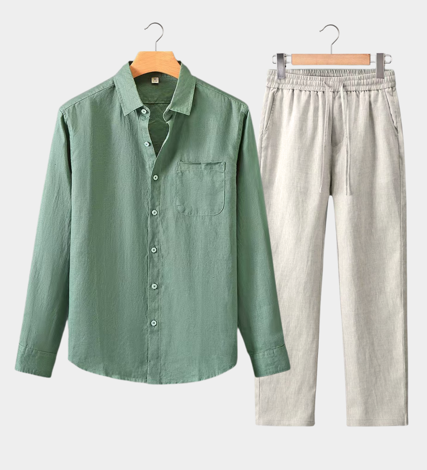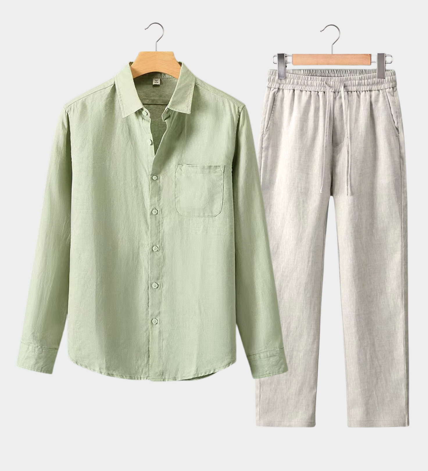 LONG SLEEVE SHIRT SUMMER SET - MINT GREEN/BEIGE