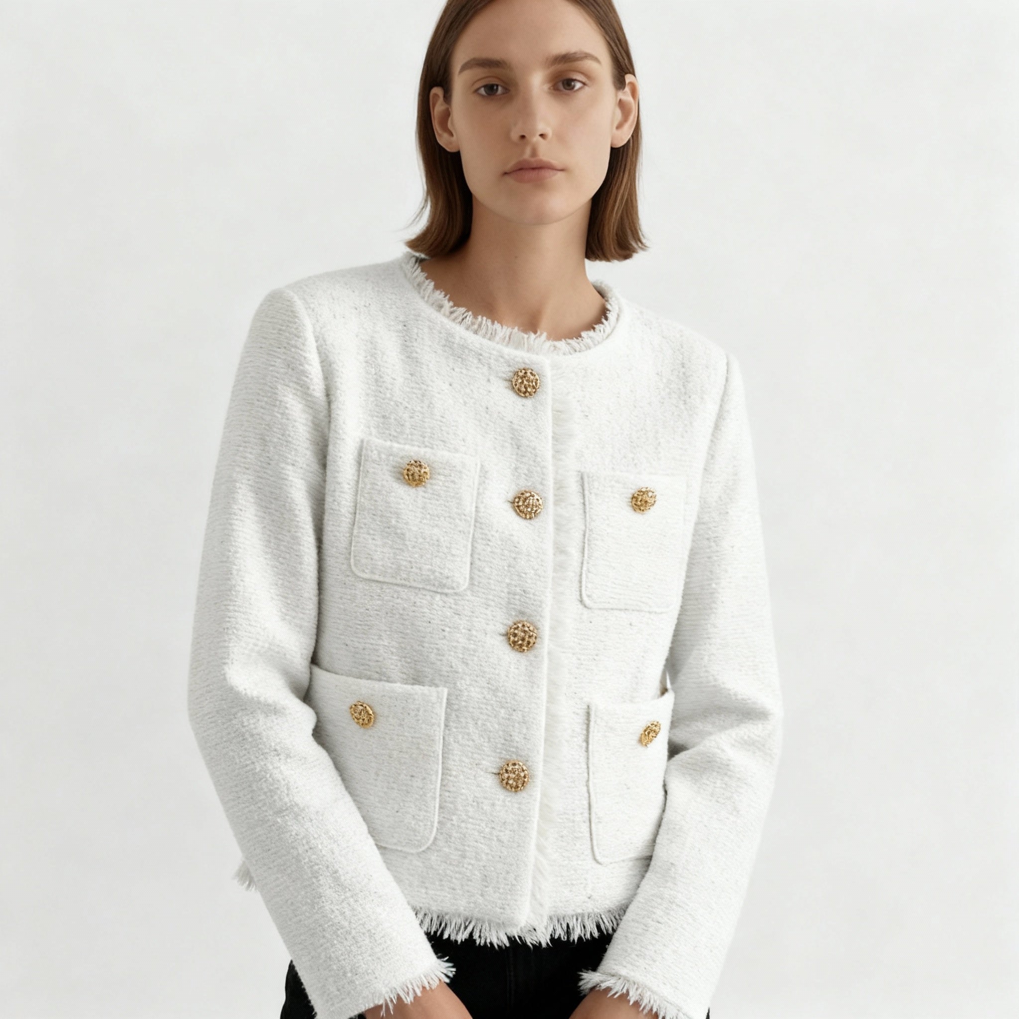 - Rafiniranom dizajnu: Elegantan kroj i detalji u stilu Chanela dodaju vašem outfitu šarm i ženstvenost.