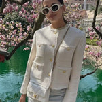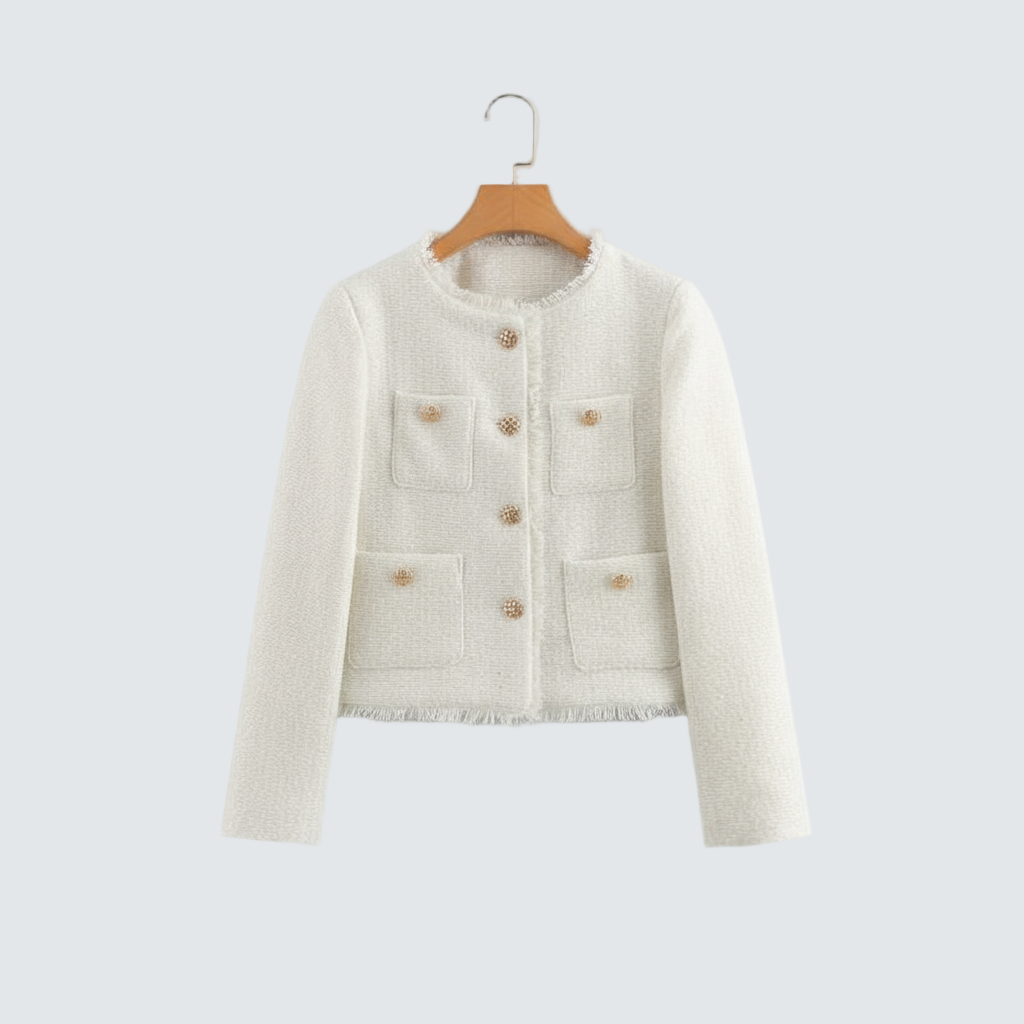 Otkrijte Clarette, elegantan sako inspiriran pariškim stilom. Sa finom strukturom, luksuznim izgledom i zlatnim gumbima u duhu ikonične elegancije, Clarette donosi savršenu ravnotežu između sofisticiranosti i praktičnosti. Idealan je za modernu ženu koja cijeni kvalitetu, stil i bezvremenost – bilo da je u pitanju posao ili večernja prilika.